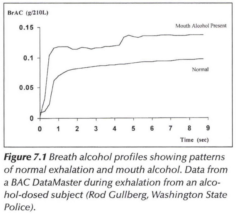 When mouth alcohol contamination occurs, whether from residual alcohol in the mouth, acid reflux, or stomach contents coming up through burping, the expirogram shows telltale signs: unusual waviness, negative slopes, or erratic spikes. These patterns are like fingerprints of contamination.